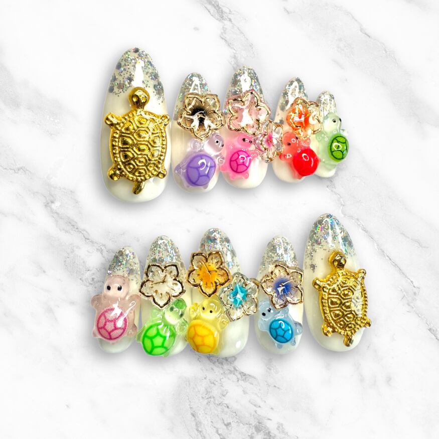 かわいい亀さんたちで、指先に遊び心をプラス。